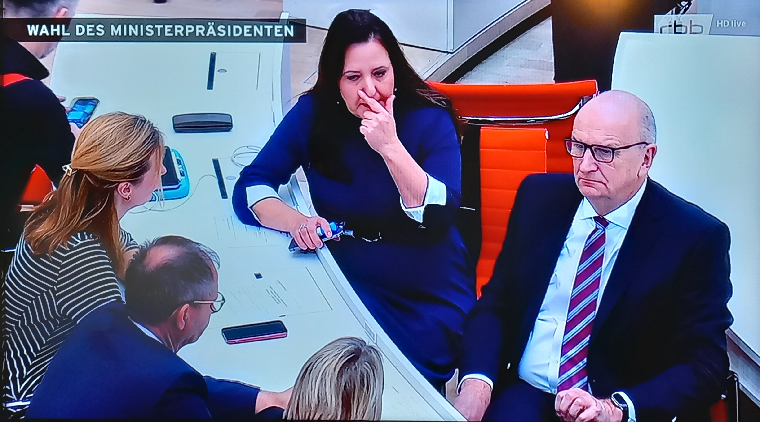 Manja Schüle (links), alte und neue Wissenschaftsministerin Brandenburgs, neben Dietmar Woidke nach dem verlorenen ersten Wahlgang. (Quelle: RBB, Foto: GMP)
